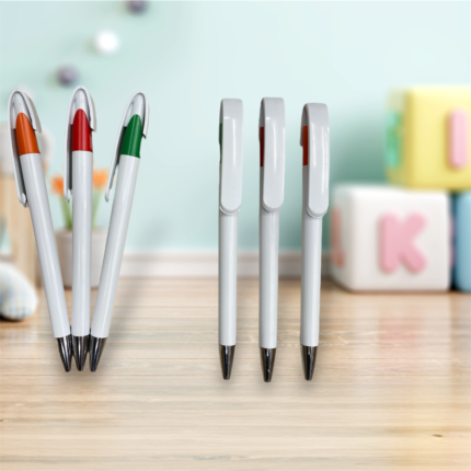 Renkli Klips Seçenekli Promosyon Kalem | Beyaz Gövde Plastik Tükenmez Kalem