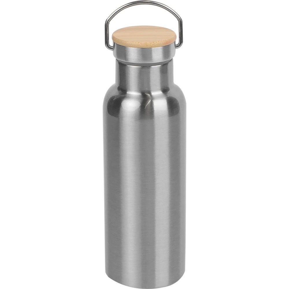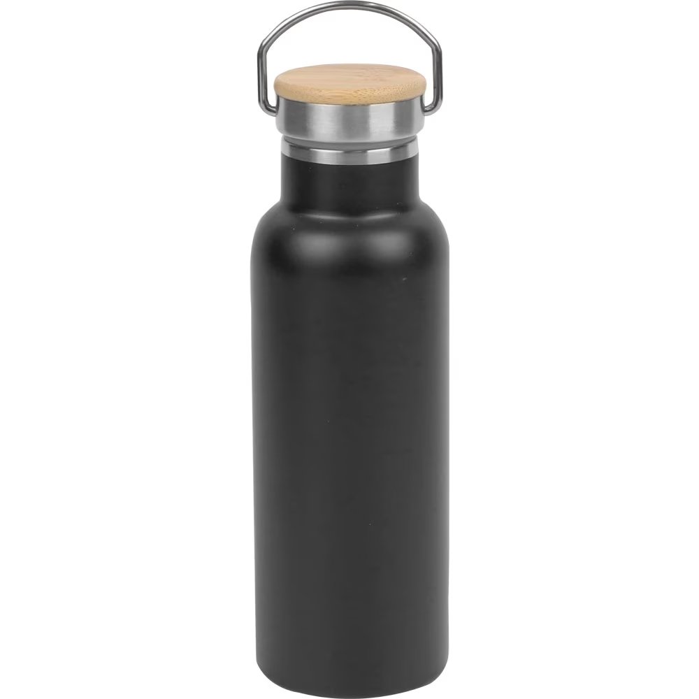 Paslanmaz çelik 500 ml vakumlu termos matara, bambu kapak + kulplu taşıma sapı. Çift duvarlı, 6-12 saat sıcak/soğuk tutar. Logo baskılı promosyon matara, çevre dostu kurumsal hediyelik. Toptan ucuz fiyat!