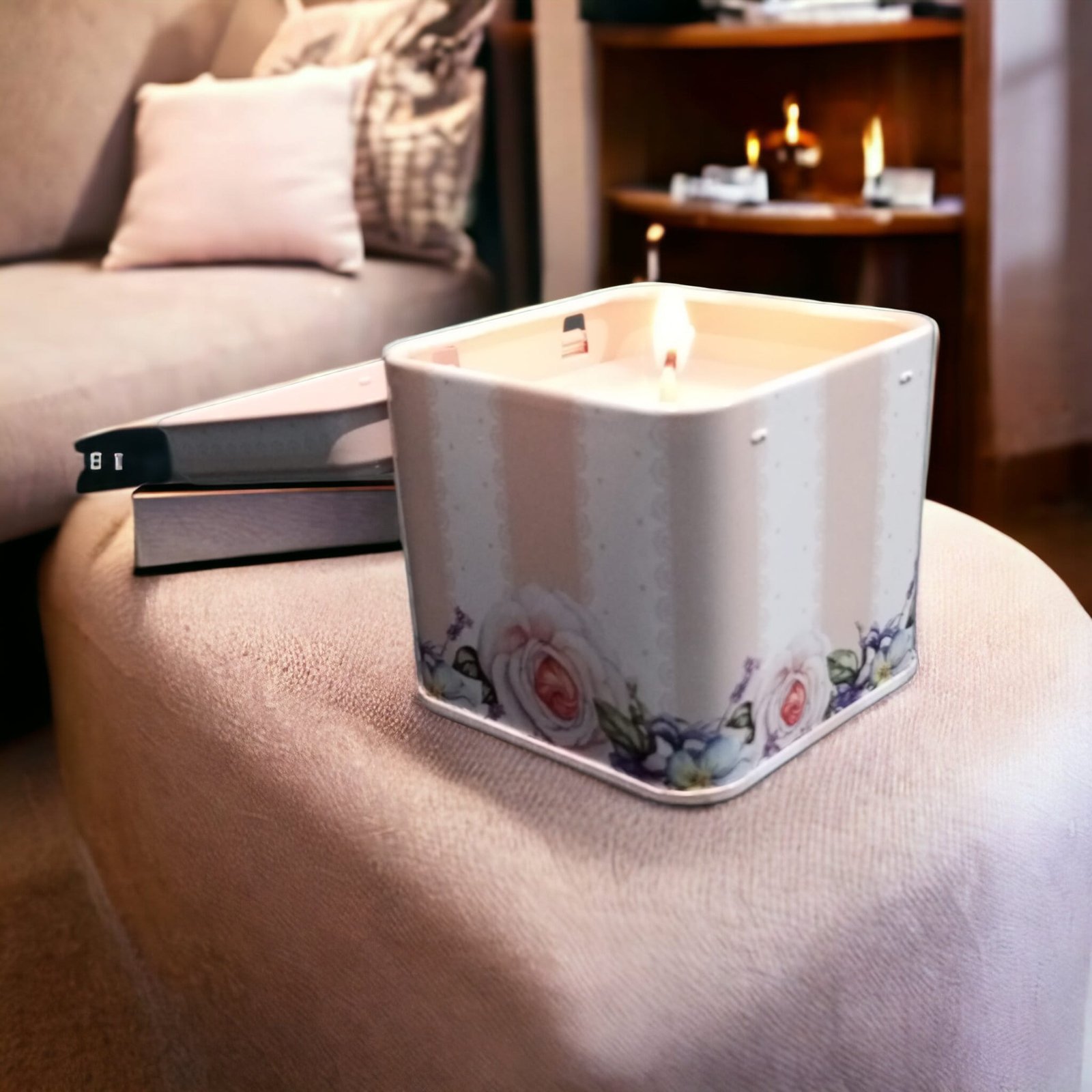 Dekoratif Mumlu Metal Teneke Kutu | Vintage Tasarımlı Aromatik Mum ve Saklama Kutusu