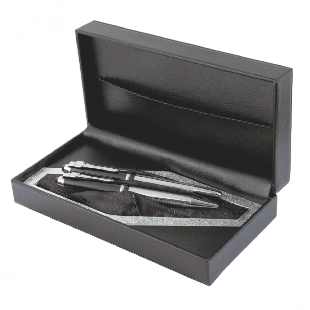 Siyah ve gümüşün kusursuz uyumuyla tasarlanan bu ikili set, markanızın ciddiyetini ve profesyonelliğini temsil eder.
