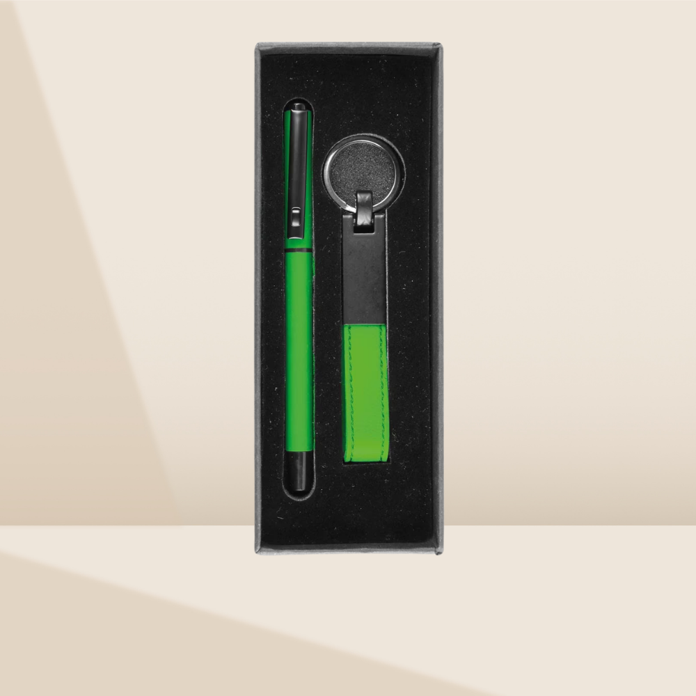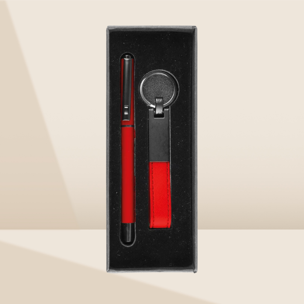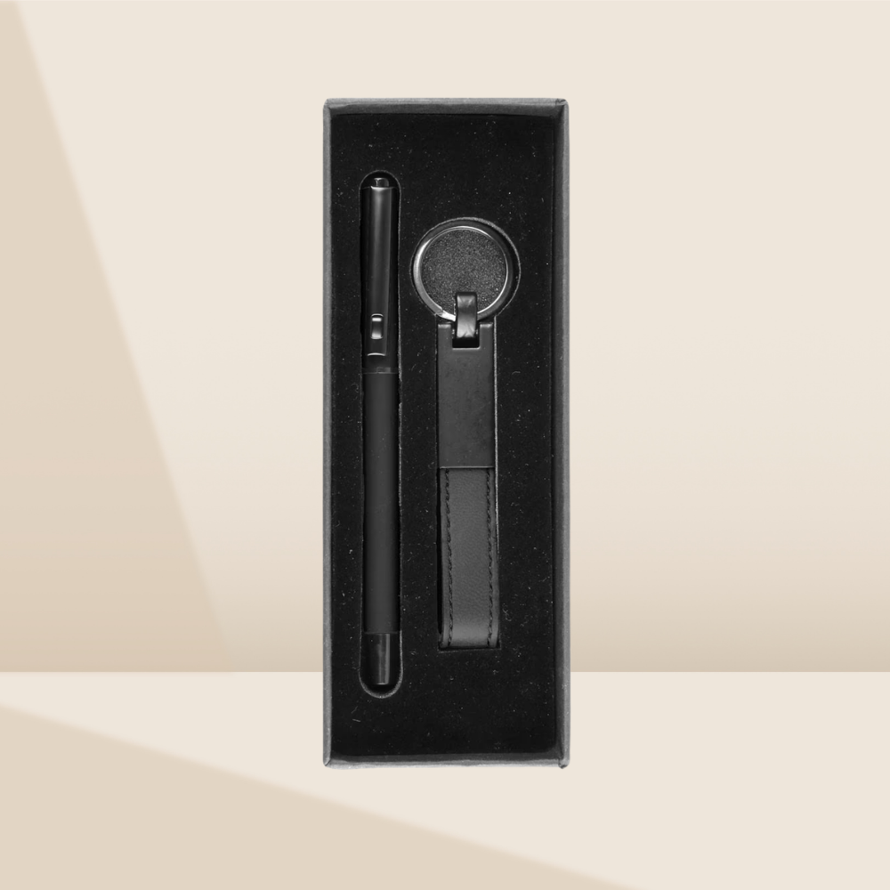 Setteki diğer parça olan Deri ve Metal Kombinasyonlu Anahtarlık, dayanıklılığı şık bir tasarımla birleştirerek markanızın her an taşınabilir olmasını sağlar. Ürünler, şık siyah bir muhafaza kutusu içerisinde, darbelere karşı koruma sağlayan kadife dokulu özel sünger yatağında sunulmaktadır. Bu set, hem bütçe dostu olması hem de yüksek prestij algısı yaratmasıyla kurumsal etkinlikler ve çalışan ödüllendirmeleri için mükemmel bir tercihtir.