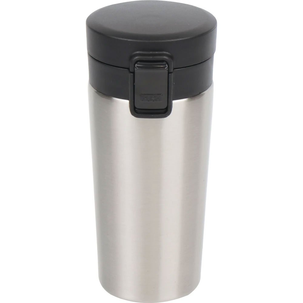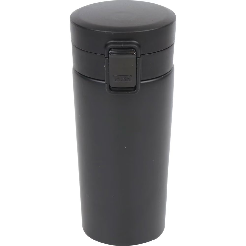 Mat siyah paslanmaz çelik 500 ml termos matara, flip kapak + kilit mekanizmalı. Tek elle kullanım, 6-8 saat sıcak/soğuk tutar. Logo baskılı promosyon termos, toptan ucuz fiyat!
