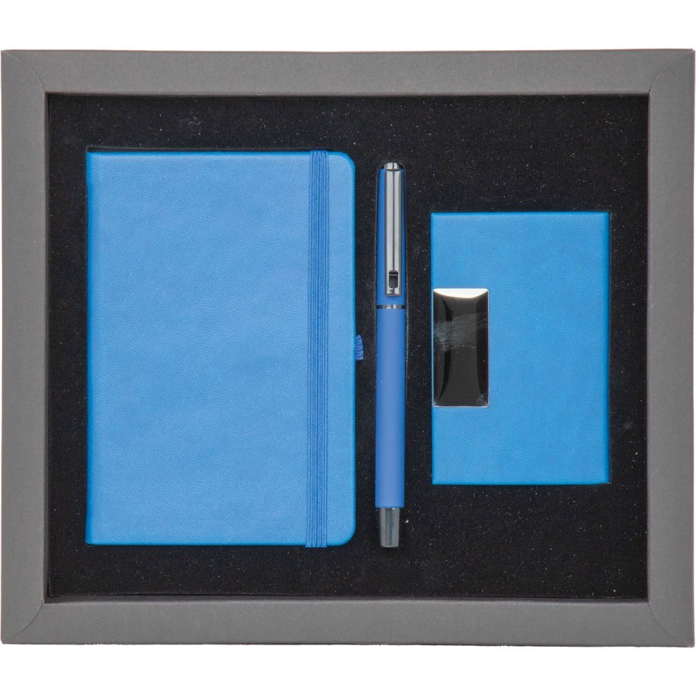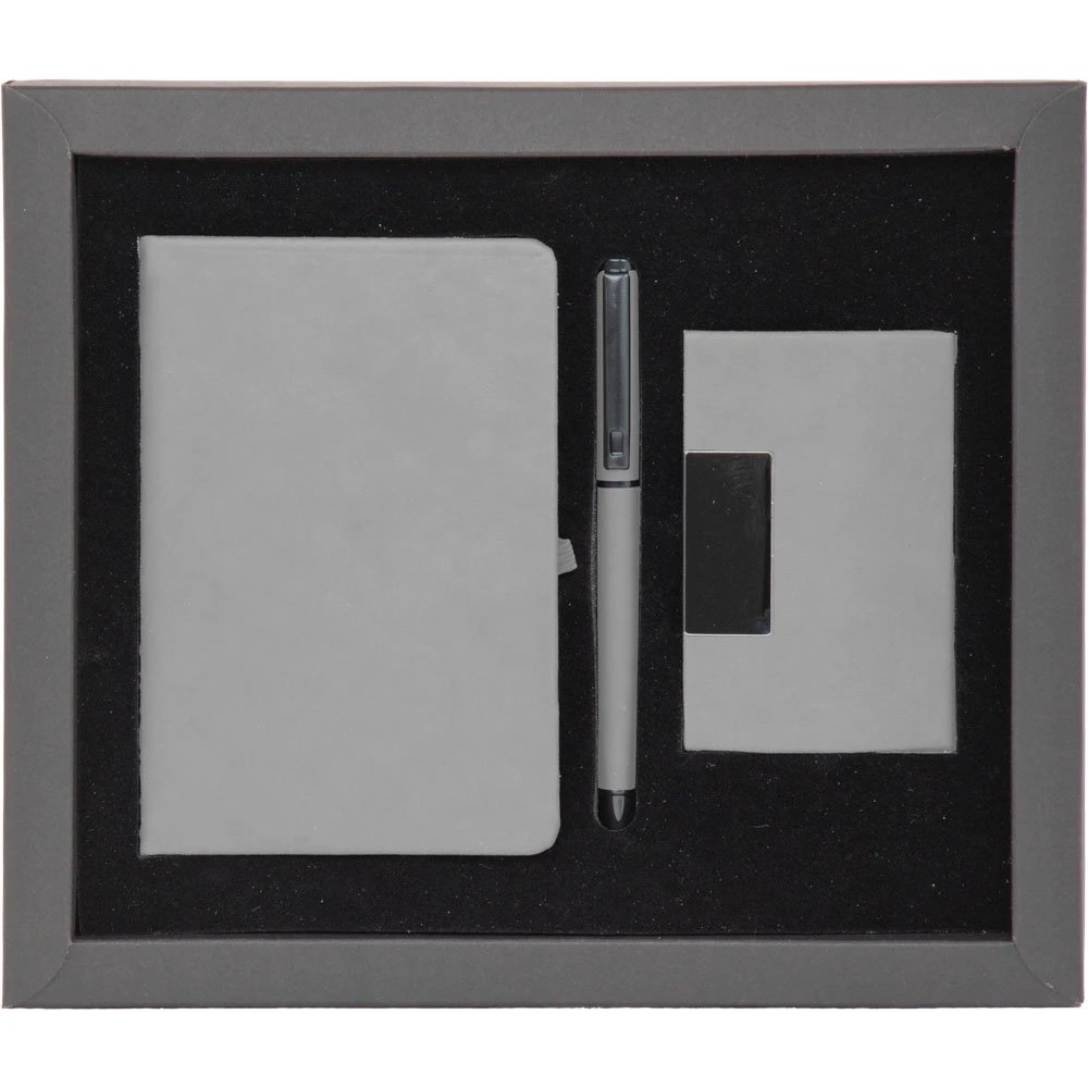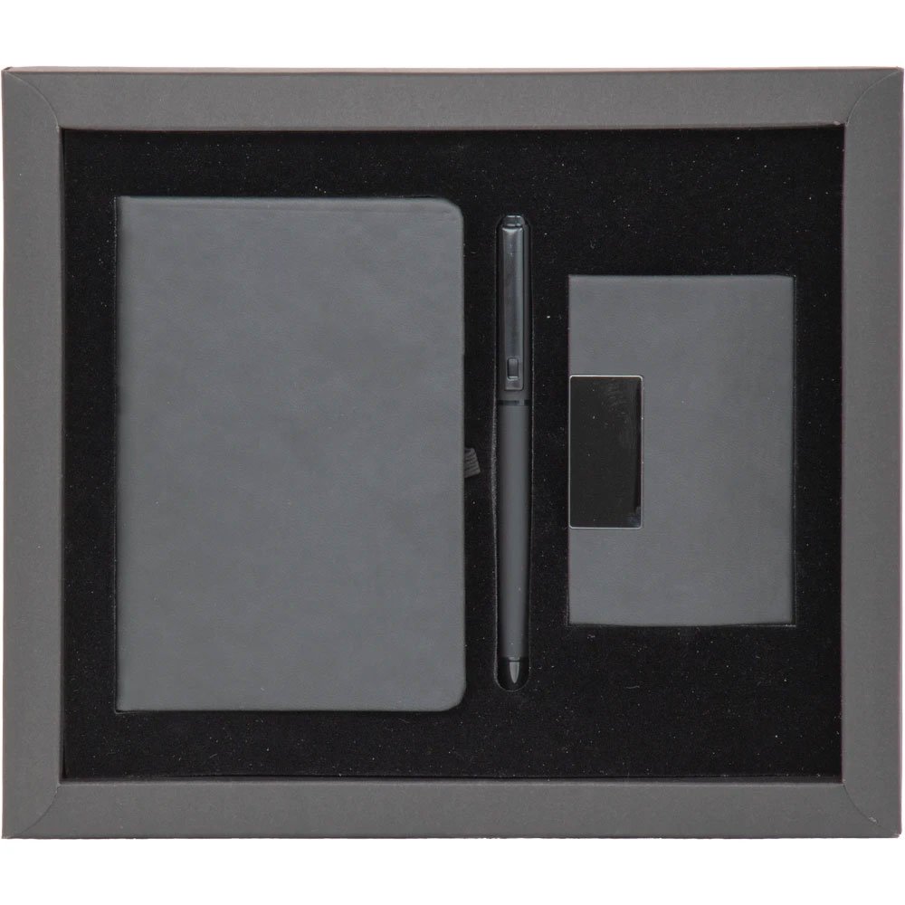 Üçlü Profesyonel Takım: Defter, kalem ve kartvizitlikten oluşan bütünsel ofis seti.