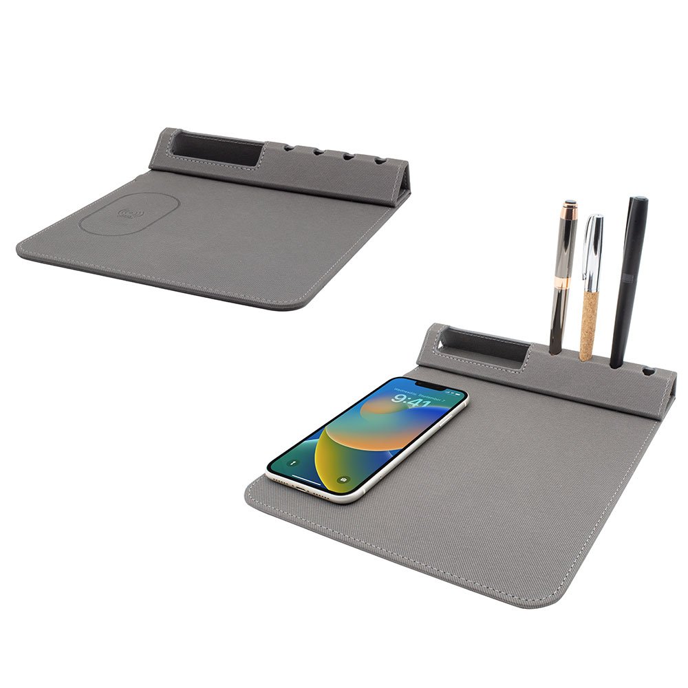 Wireless Şarj Mouse Pad & Masa Düzenleyici | Telefon Şarj İstasyonlu ve Kalemlik Bölmeli Fonksiyonel Ofis Aksesuarı